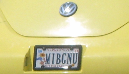 LadyStyx sent in MIBGNU. She helps us out with this interpretation: Am I Buggin' You? On a yellow VW Beetle.