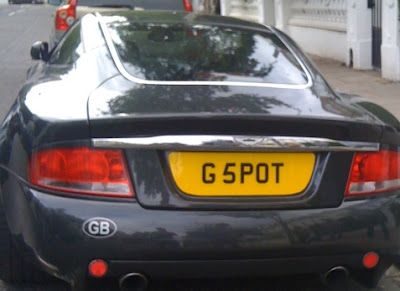 Matt sent us this plate from across the ocean, G 5POT. That 5 is supposed to represent an "S" which makes this "G SPOT." He writes: