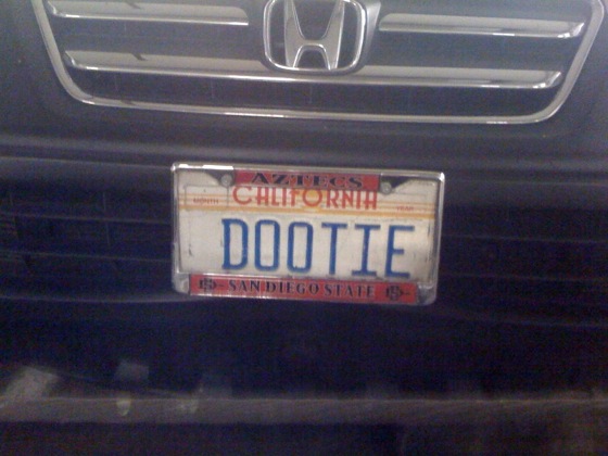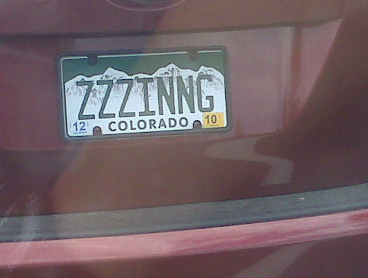 Your vanity plate sucks, ZZZINNG! (Plate snapped by Candice).